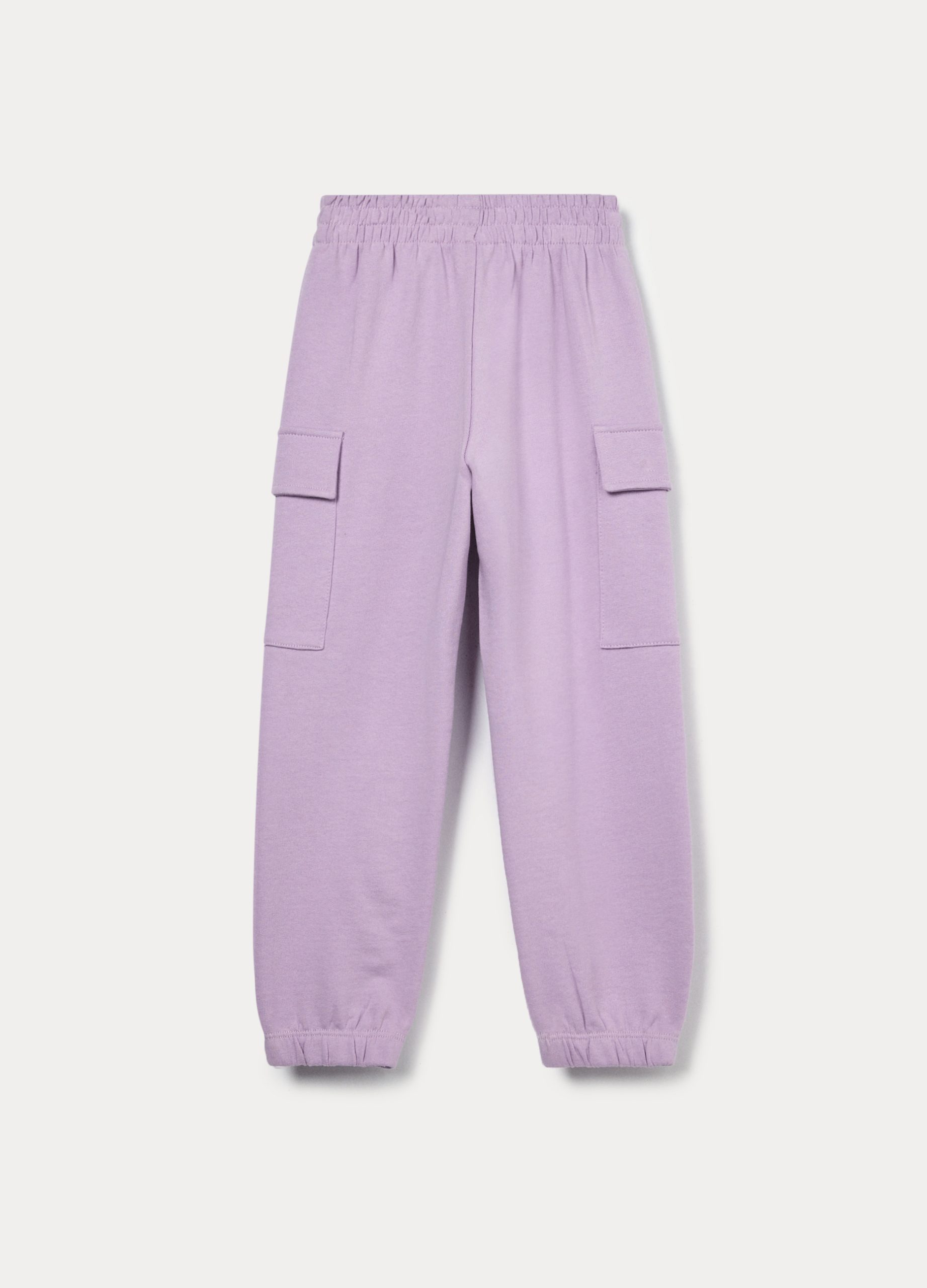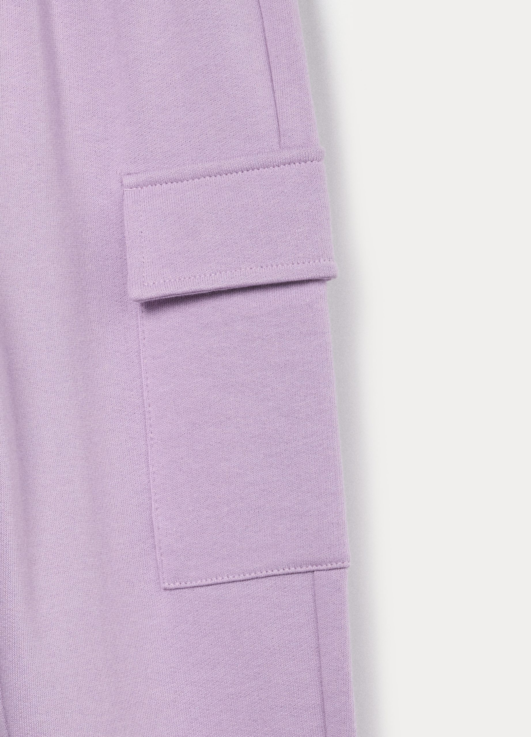 Cargo jogger hlače od francuskog frotira od čistog pamuka s elastičnim strukom i manžetama. Dva bočna džepa s preklopom. Jednobojne.