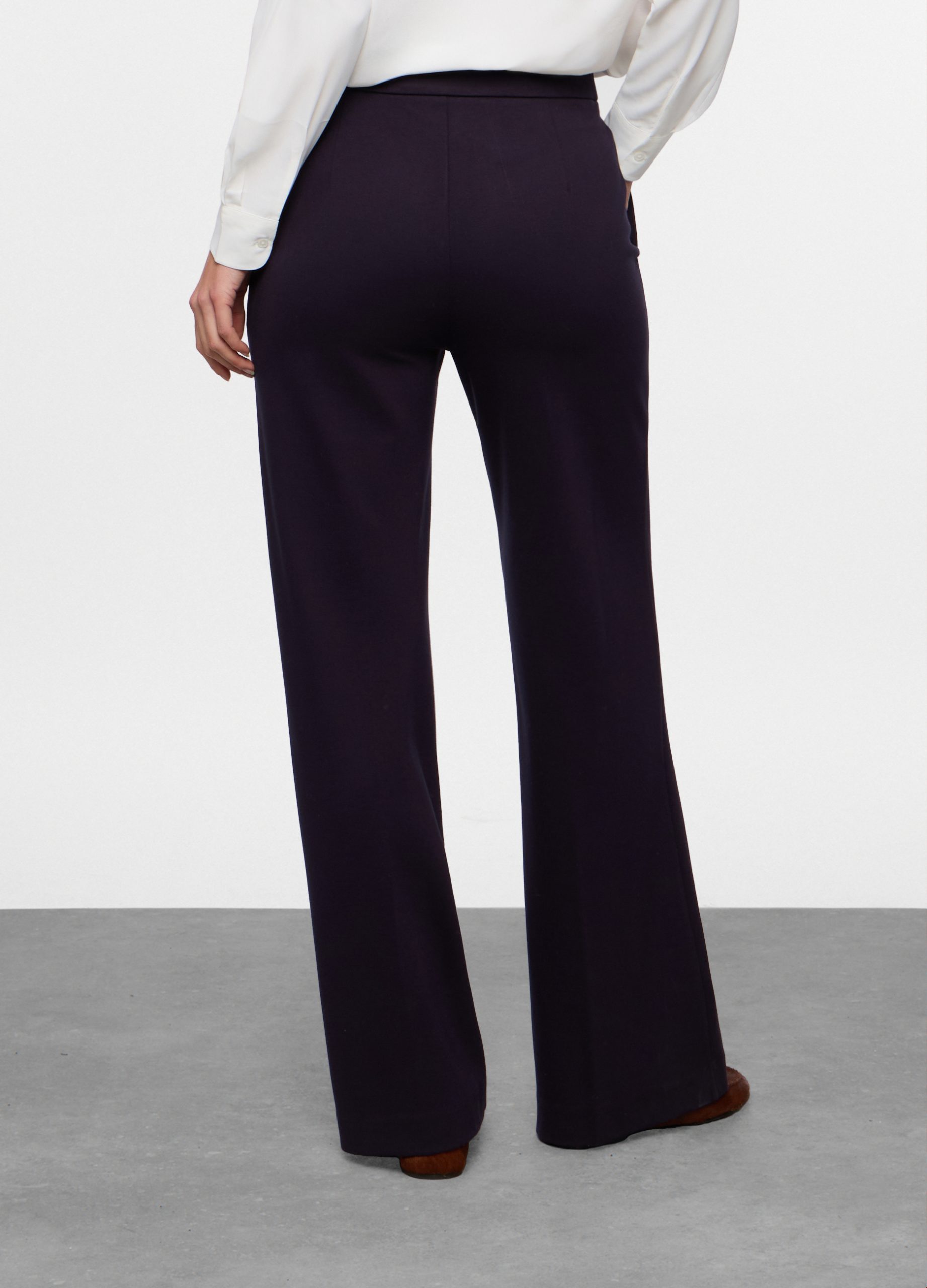Hlače od rastezljive mješavine viskoze s elastičnim strukom i dva džepa sprijeda. Jednobojne.