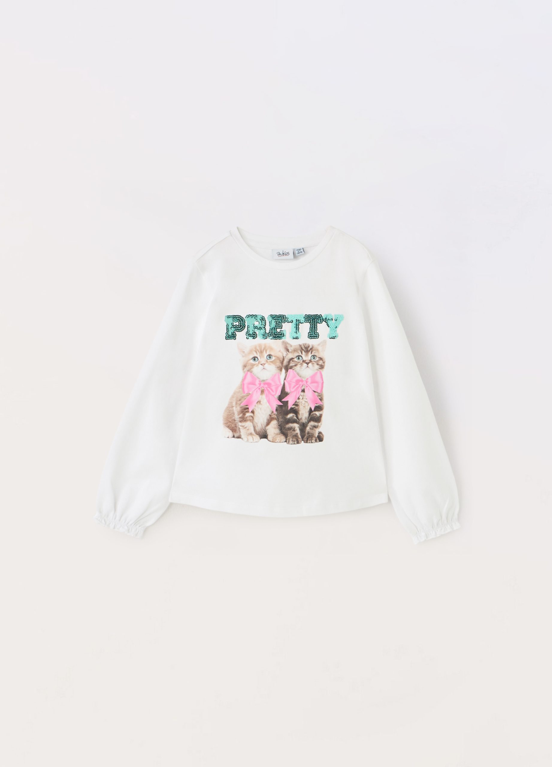 Hlače trapez kroja od francuskog frotira od rastezljivog pamuka s elastičnim strukom i uzorkom po cijeloj površini.