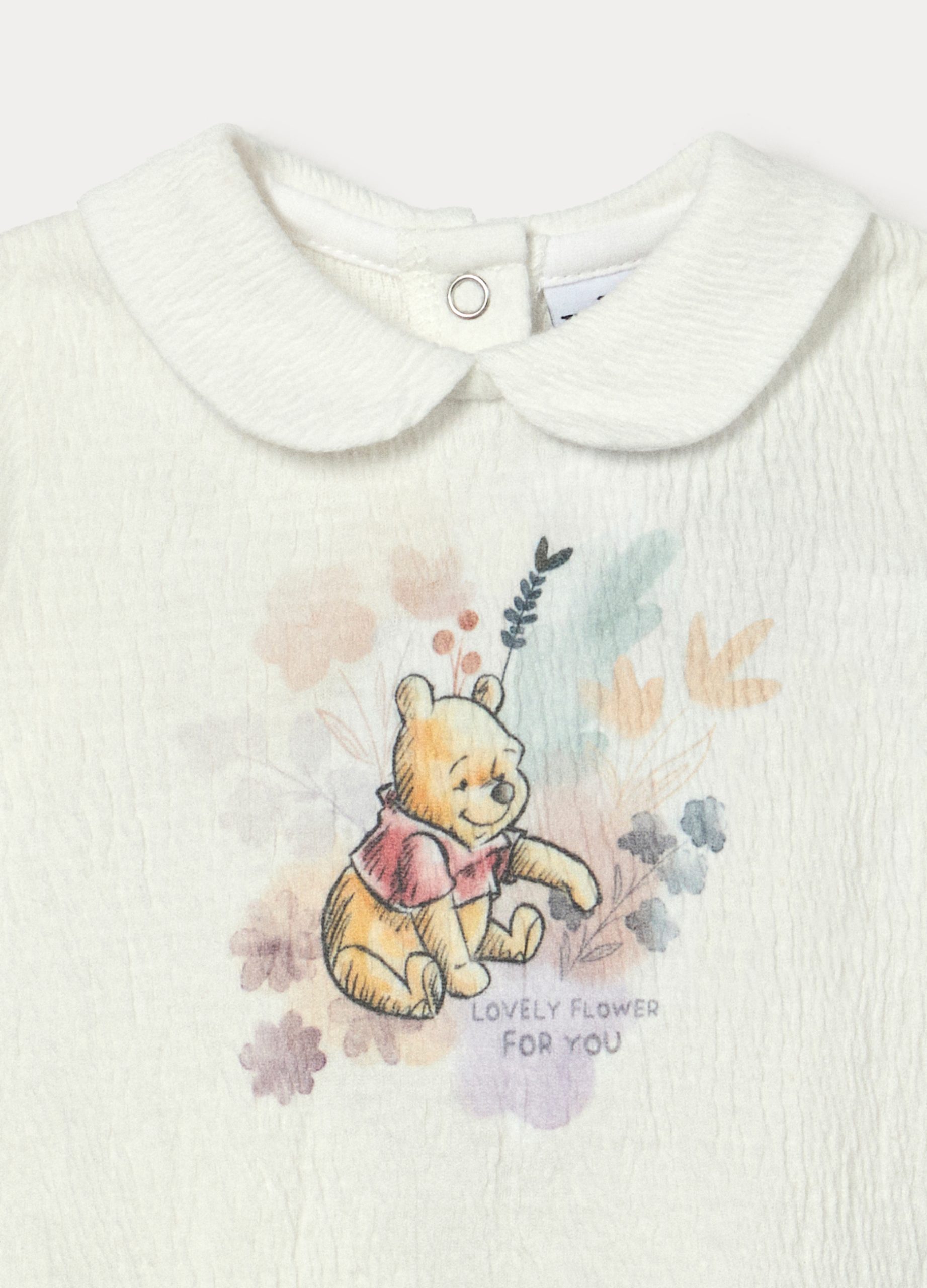 Komplet za trčanje Disney od rastezljivog žerseja koji se sastoji od majice s ovratnikom Peter Pan i kopčanjem na gumbe straga. Prednji otisak i našiveni volani. Kratke hlače s elastičnim strukom. Jednobojno.