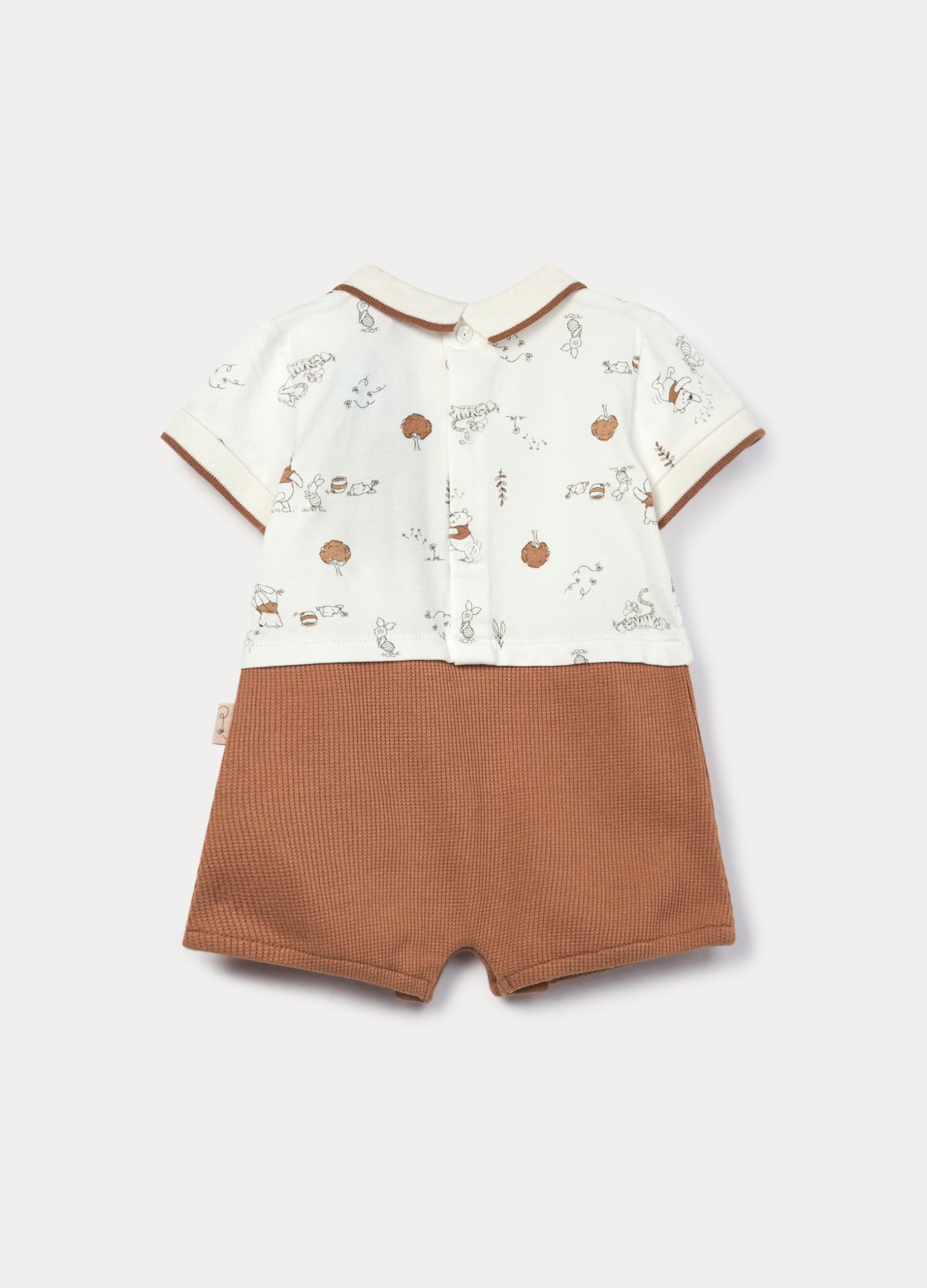 Kratka Disneyjeva tutica od mješavine pamučnog žerseja s ovratnikom i obrubom rukava u rebrastom pletivu s kontrastnim profilom. Našiveni džep sprijeda i otisak po cijeloj površini. Kopčanje gumbima na leđima i na preponama.