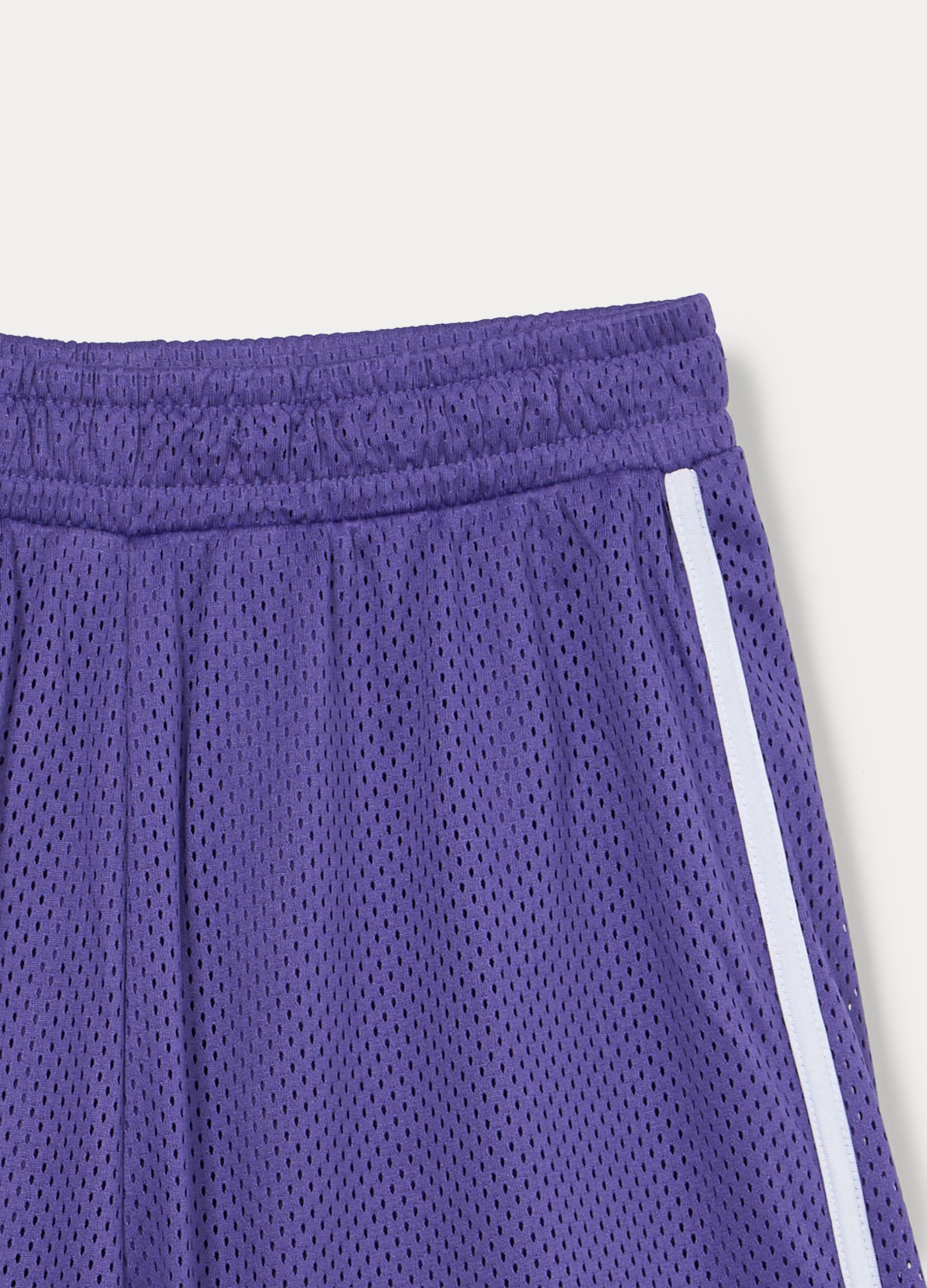 Kratke hlače od mrežaste tkanine s elastičnim strukom i printom. Kontrastni obrubi.