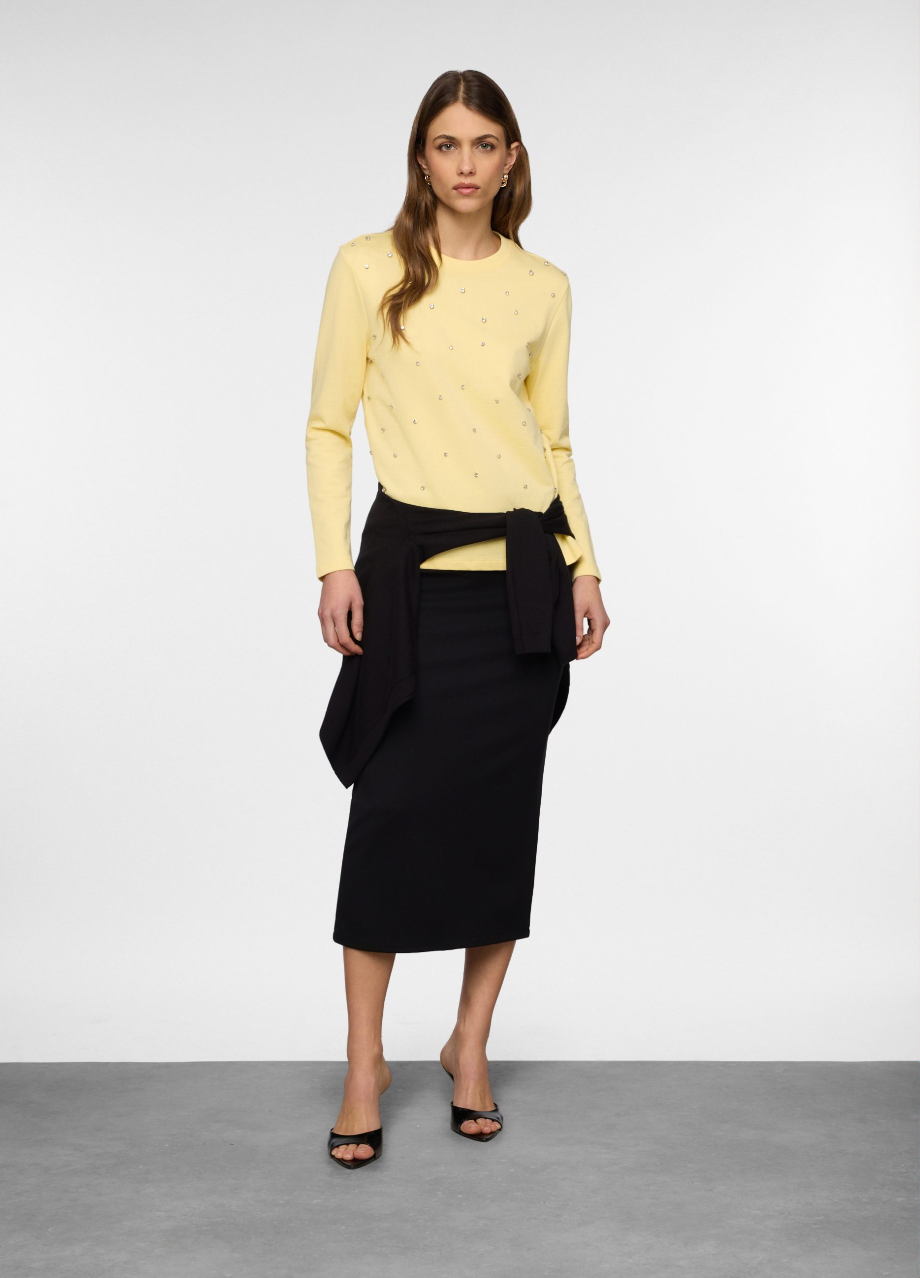 Majica kratkih rukava sa okruglim izrezom od rastezljivog pamučnog žerseja. Dugi rukavi i cjelokupni cvjetni print.