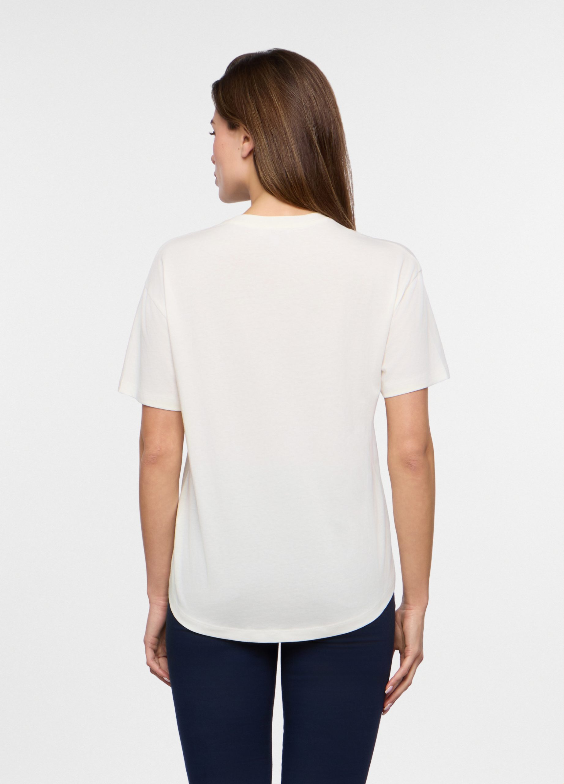 Majica od jerseya čistog pamuka s okruglim rebrastim izrezom i kratkim rukavima. Otisak na prednjoj strani.