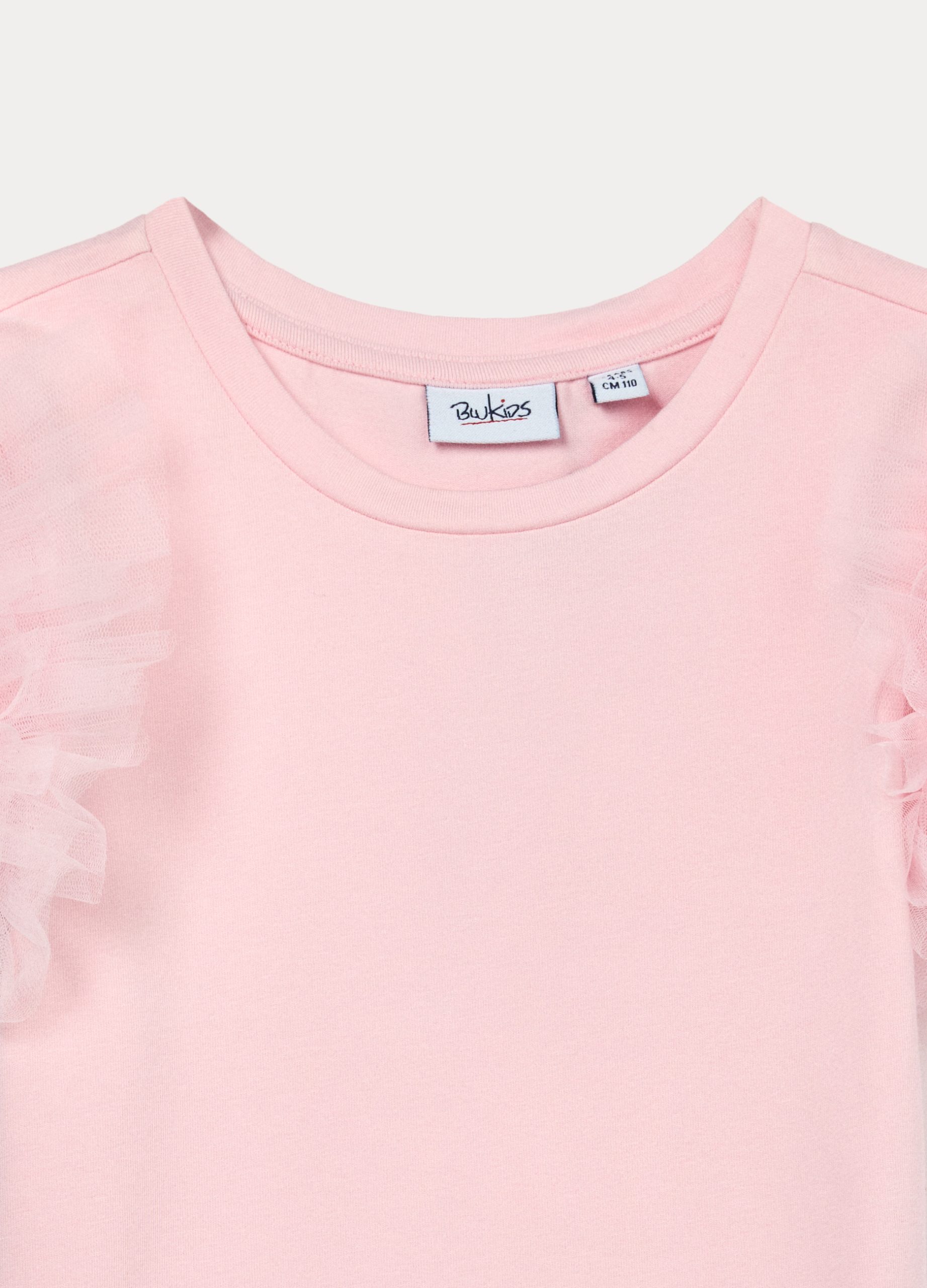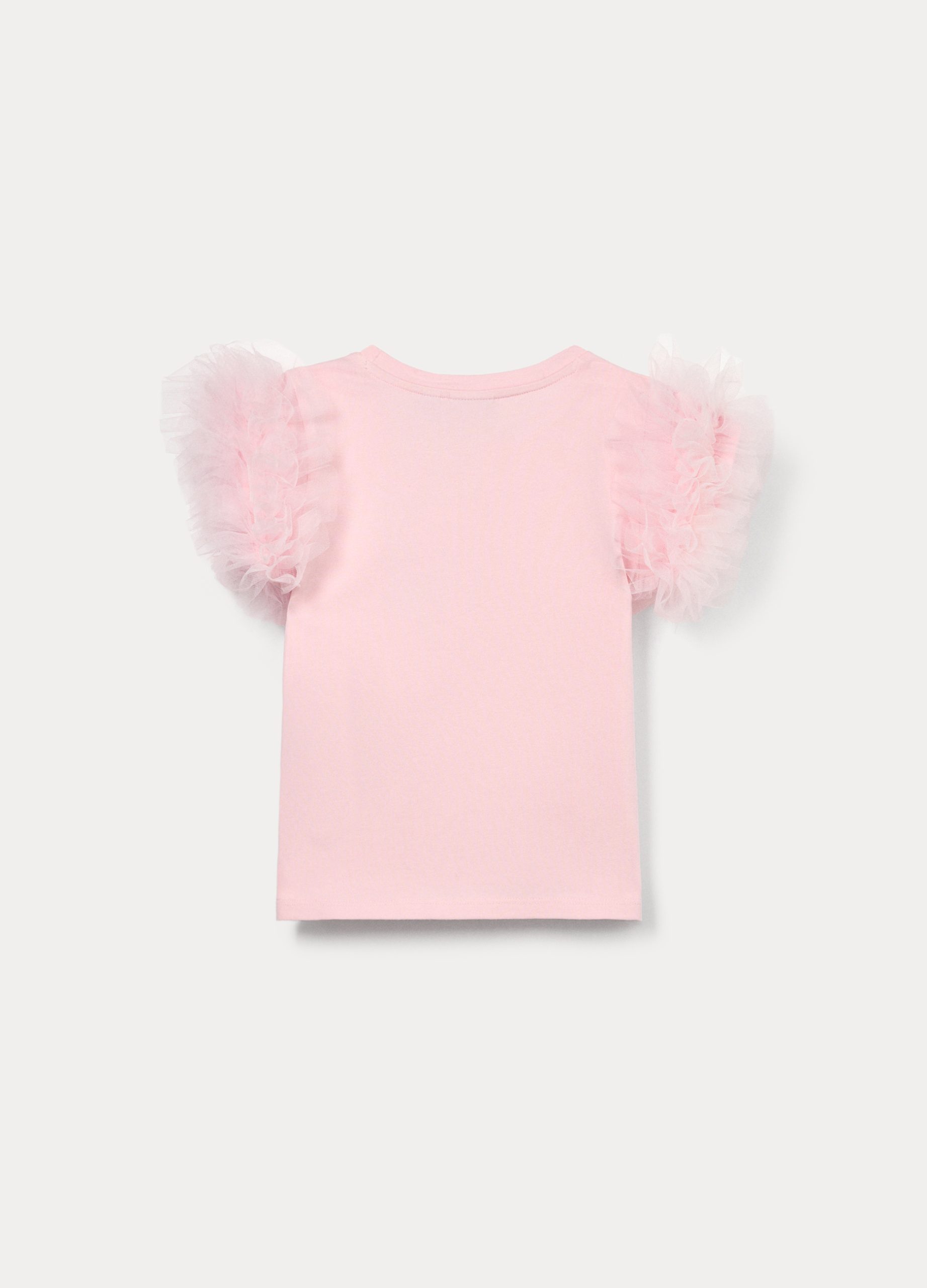 Majica od rastezljivog pamučnog jerseya s okruglim izrezom i volanima od tila našivenim na rukavima.