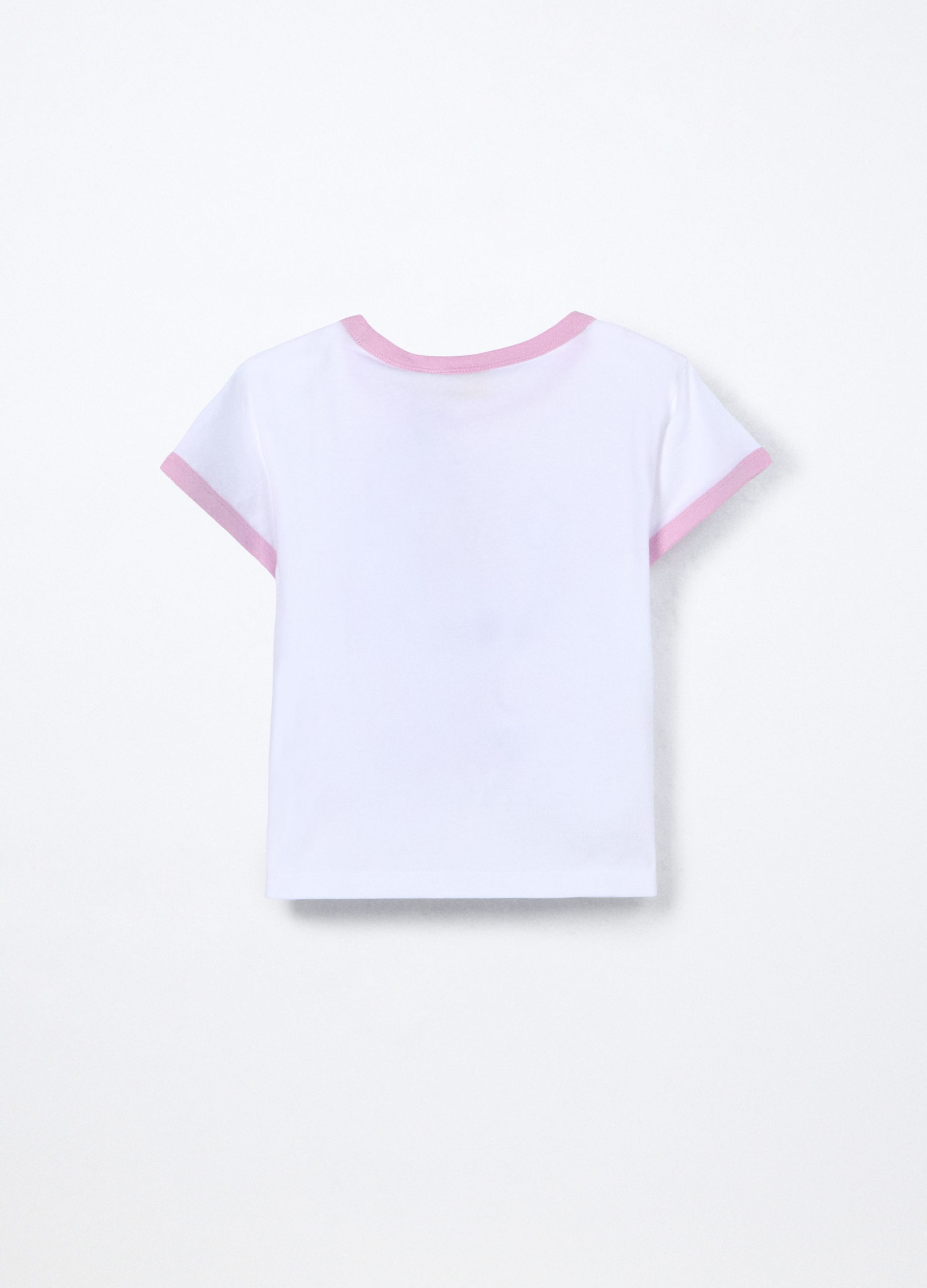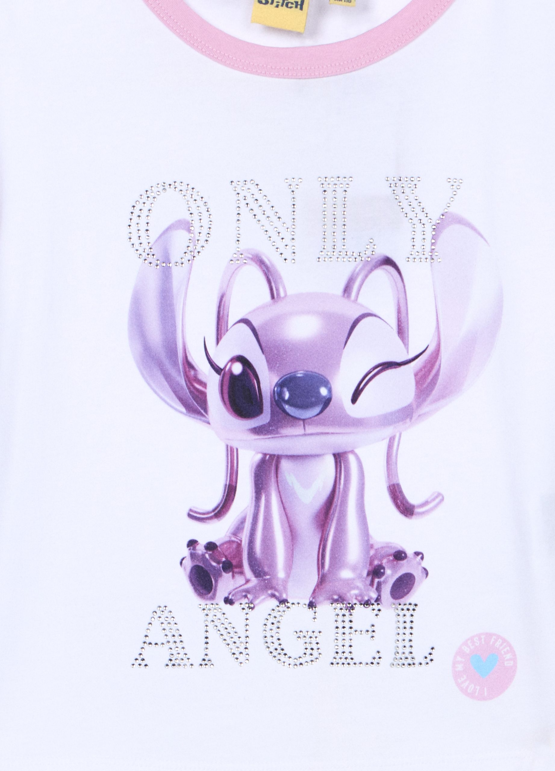 Majica od rastezljivog pamučnog jerseya s okruglim izrezom i kratkim rukavima. Disneyev print i ukrasni kamenčići sprijeda. Kontrastni obrub oko vrata i rukava.