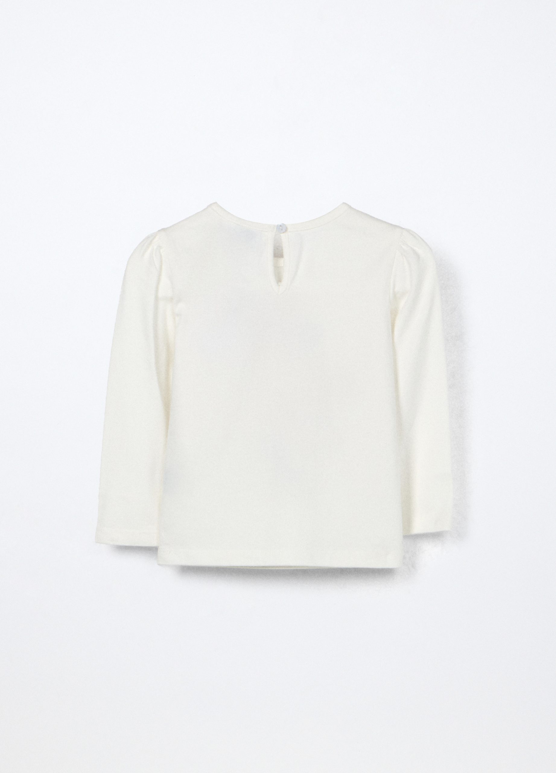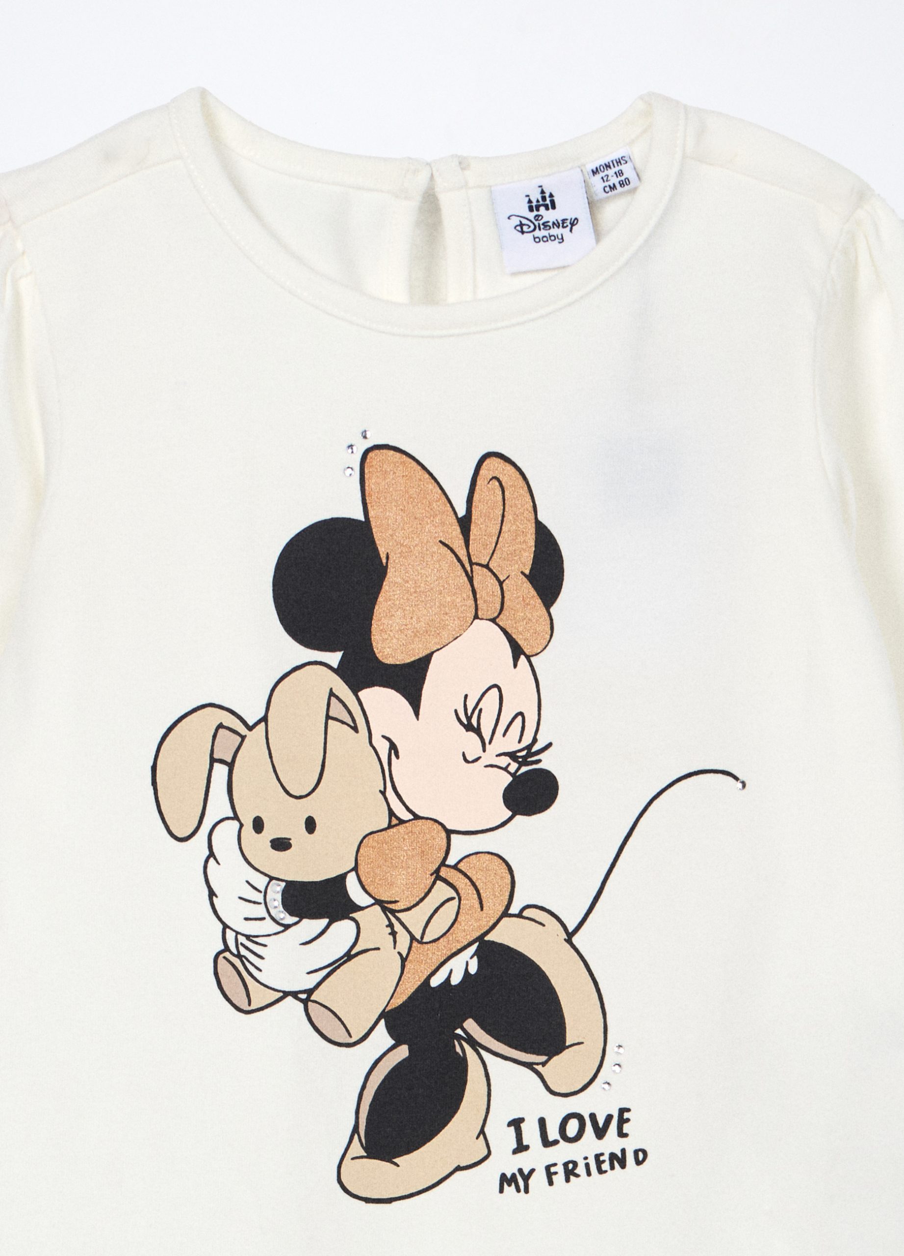Majica od rastezljivog pamučnog jerseya s okruglim izrezom i kopčanjem na gumb straga. Sjajni Disneyjev print sprijeda. Dugi rukavi.