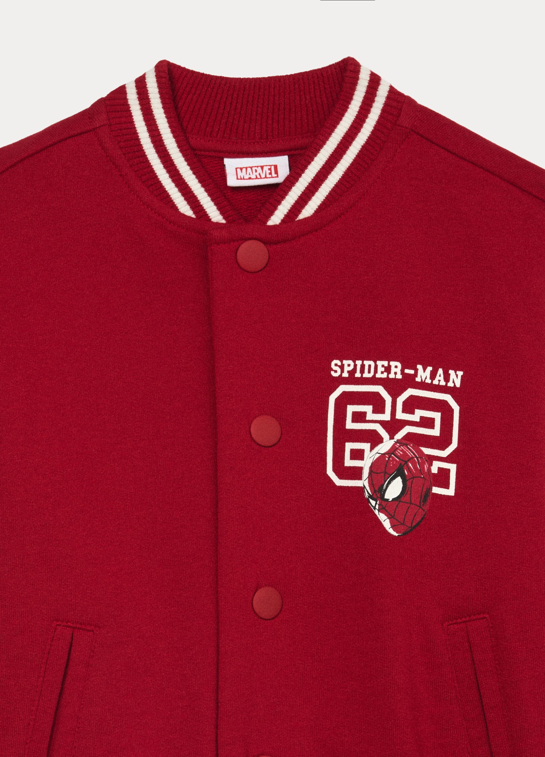 Marvel varsity pulover od čistog pamučnog flisa s kopčanjem na gumbe. Vratni izrez, donji dio i manžete rebraste s prugastim uzorkom. Dva džepa s obrubom sprijeda.
