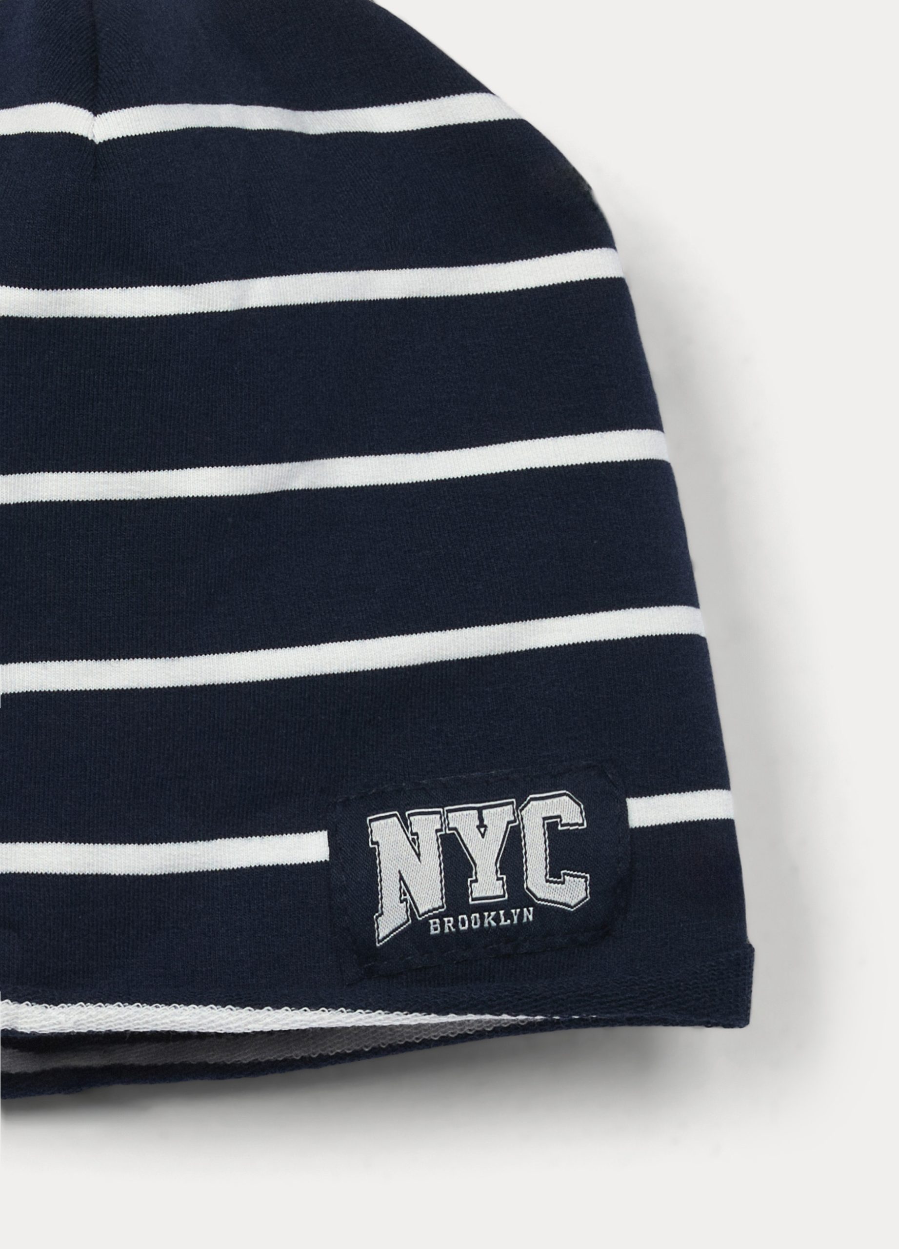Prugasta kapa obojena pređom od rastezljivog francuskog frotira od pamuka s našivenom zakrpom s logotipom.