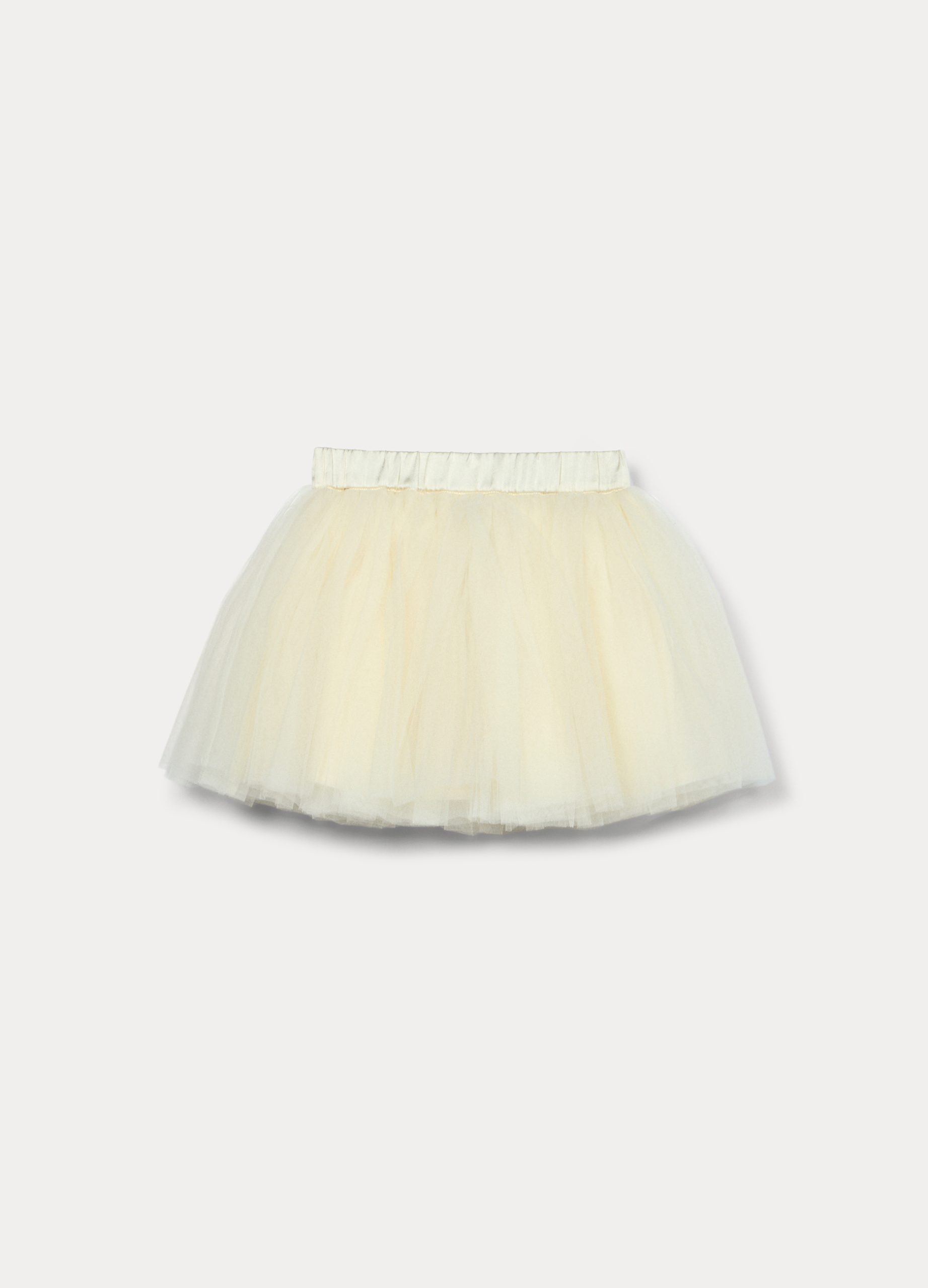 Suknja od tila s elastičnim strukom i apliciranom mašnom. Jednobojna.
