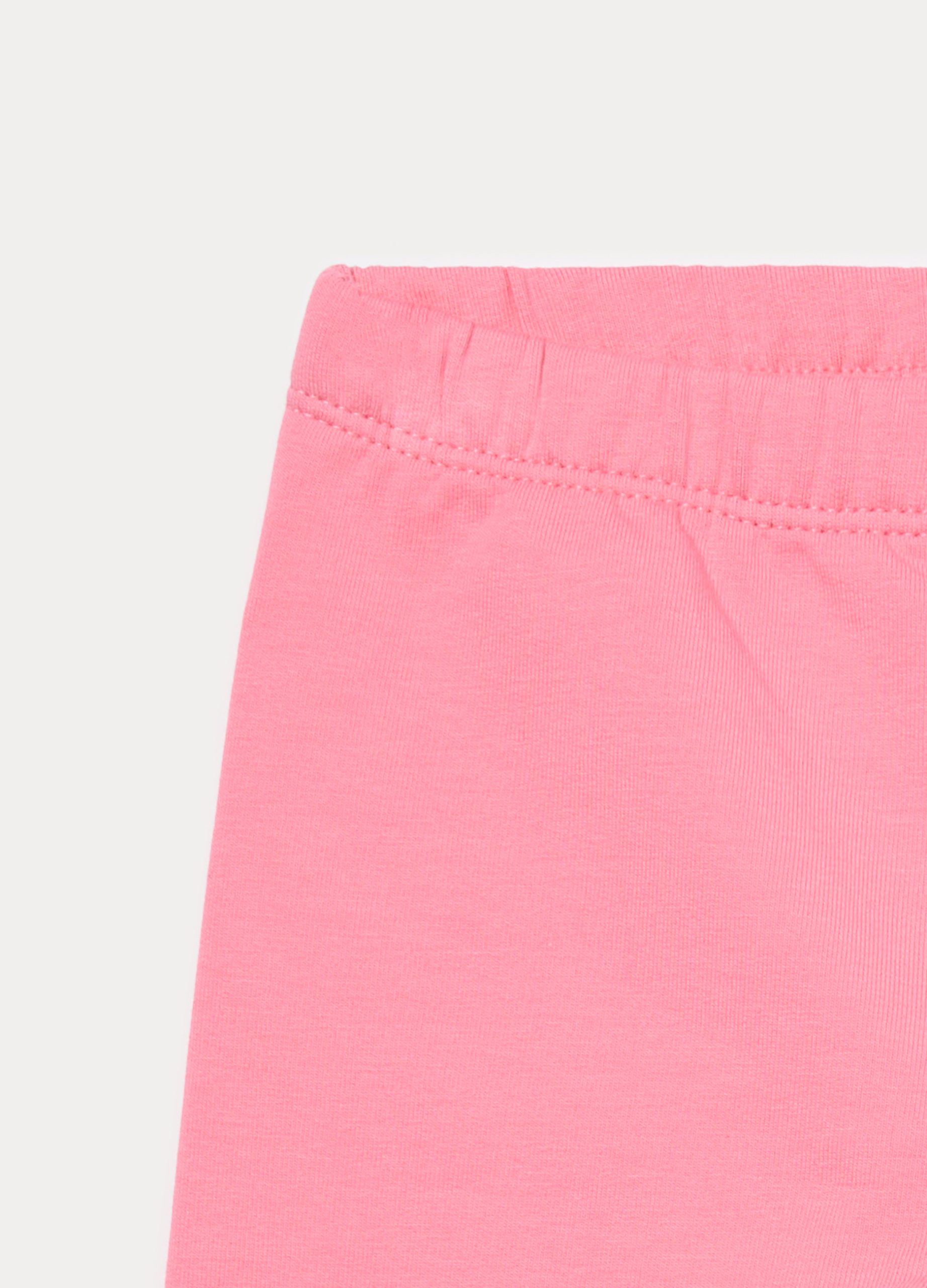 Tajice od rastezljivog pamučnog frotira s elastičnim strukom i volanima na dnu. Jednobojne.