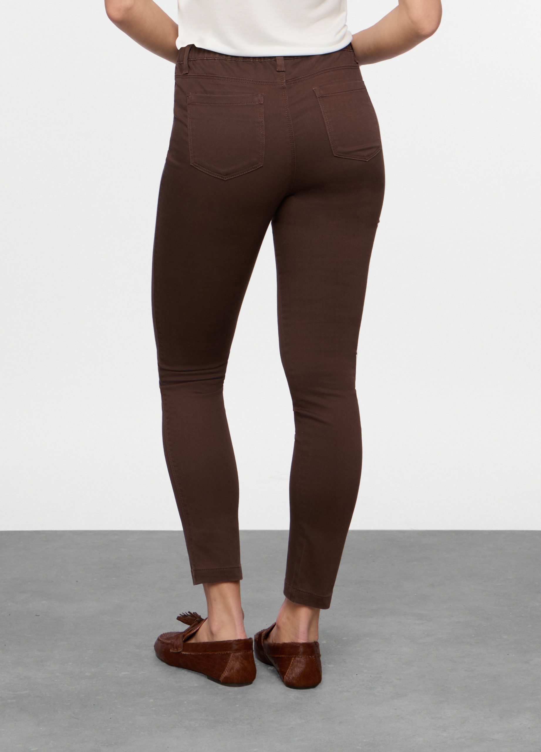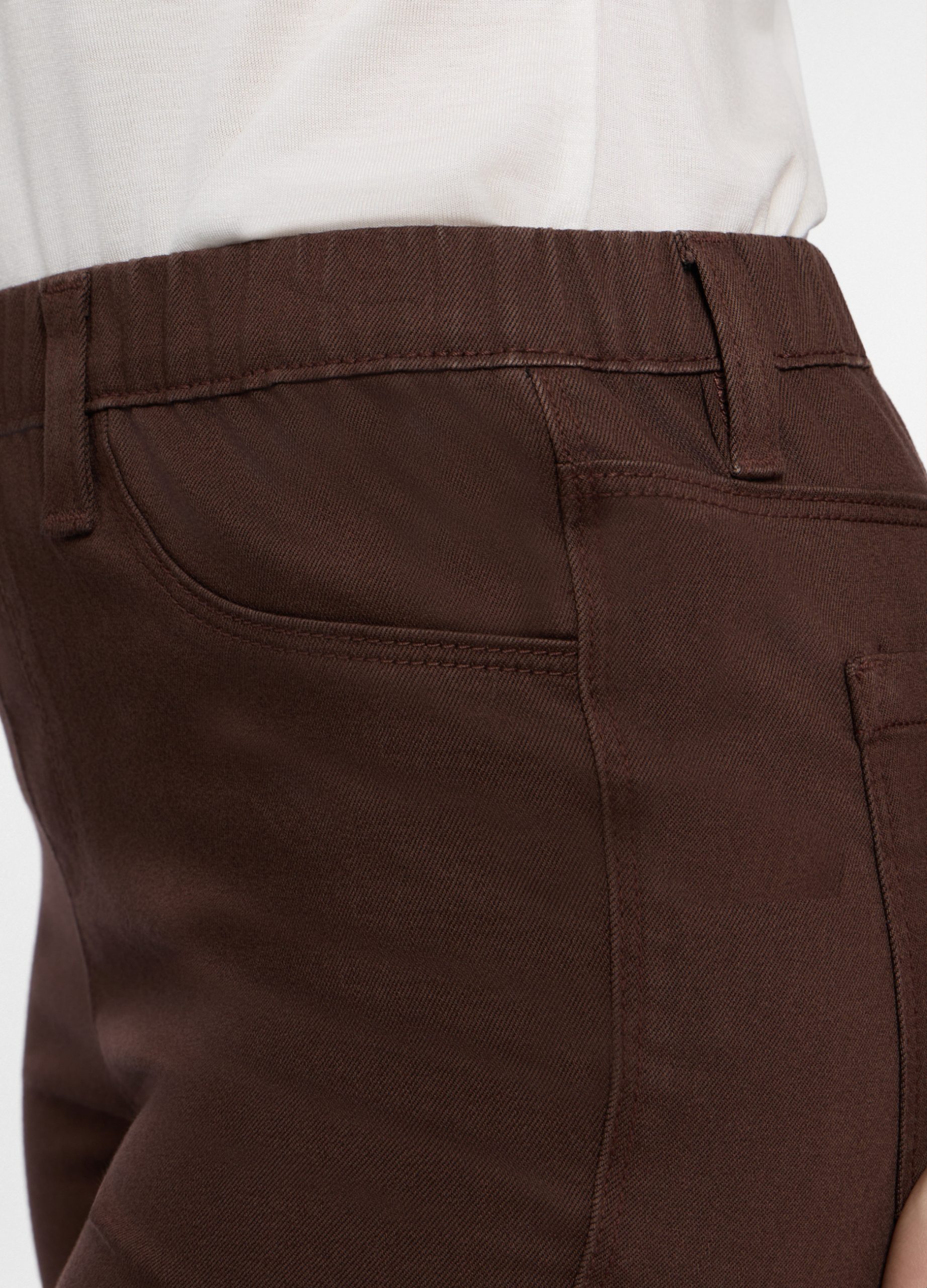 Tajice od trapera miješanog pamuka s elastičnim strukom. Dva džepa sprijeda i dva našivena džepa straga. Jednobojne.