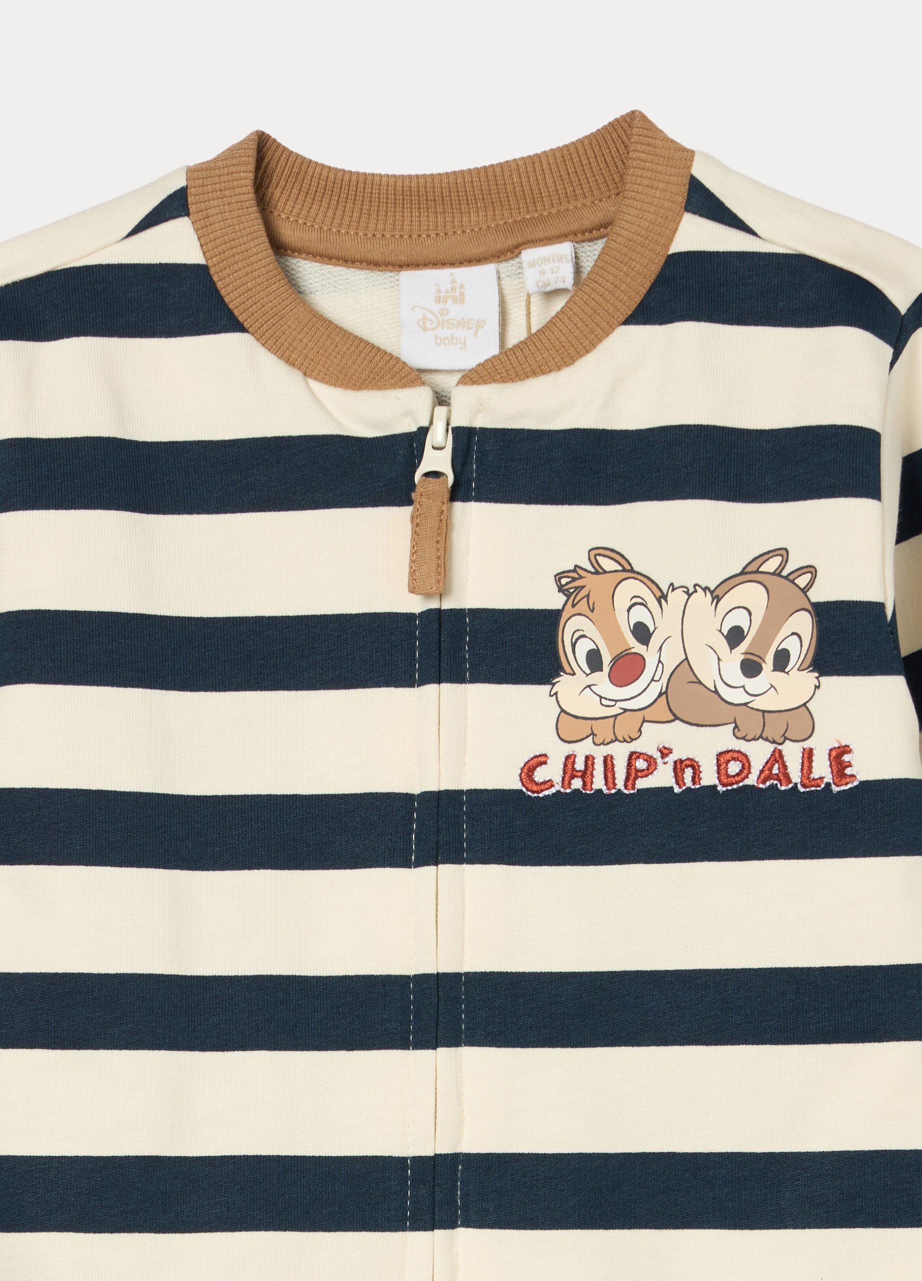 Trenirka Disney od čistog pamučnog frotira koja se sastoji od gornjeg dijela s prugastim uzorkom i printom. Potpuno zatvaranje patentnim zatvaračem sprijeda. Okrugli izrez, donji dio i manžete od rebraste tkanine. Usklađene hlače s rebrastim strukom i manžetama. Jednobojna.